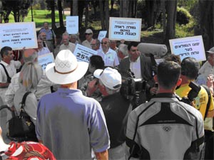 Всемирного конгресса русскоязычного еврейства (ВКРЕ). На утопающий в розах холм пришли сегодня многие лидеры общественных русскоязычных организаций Израиля и депутаты кнессета отнюдь не из-за красоты этого места, расположенного в самом сердце священного не только для евреев Иерусалима. Причина куда более серьезна. Дело в том, что в настоящее время посланник израильского правительства, депутат кнессета от партии «Гиль», министр по делам пенсионеров Рафи Эйтан ведет переговоры с германской стороной о переводе в Израиль крупной суммы денег (порядка сотен миллионов евро), предназначенных для так называемых «беженцев Катастрофы». К этой категории относятся и члены семей, эвакуированные из мест своего постоянного проживания из-за оккупации их германскими войсками. Мы обеспокоены тем, что в Израиле, к сожалению, бытует практика, когда финансовая помощь, поступающая в качестве компенсаций для лиц, бывших узниками нацистских концлагерей, еврейских гетто, либо других жертв Катастрофы европейского еврейства, распределяется по принципу уравниловки. При этом значительная доля получаемых денег переводится людям и семьям не только не пострадавшим от нацистов, но зачастую даже и не слышавших об ужасной трагедии и страданиях миллионов европейских евреев. Вот и теперь правительство планирует распределять часть денег по принципу уравниловки, а другую часть использовать на затыкание «дыр» в бюджете. Естественно, пожилые репатрианты из стран СНГ, пережившие ужасы войны, потерявшие кров и имущество, бросившие все и бежавшие из родных мест в эвакуацию, а также их дети и родственники (практически, вся «русская улица» Израиля), протестуют против подобных методов. Передо мной «коммуникат», распространенный пресс-центром депутата кнессета Марины Солодкиной, который мне бы хотелось процитировать. «19 сентября 2007 года по инициативе депутата кнессета доктора Марины Солодкиной состоялось экстренное совещание руководителей 12 организаций бывших узников гетто, концлагерей и беженцев Катастрофы. В совещании также приняли участие русскоязычные муниципальные активисты: Борис Гитерман (Ашдод), Любовь Гитис (Арад), Полина Мирская (Нешер), руководители правозащитных организаций из Ашкелона Анна Людвин и Владимир Сандлер, а также глава музея Катастрофы в Бат Яме Юрий Ляховицкий. Представители организаций узников (Давид Таубкин, Григорий Пагис, Роза Куцык) высказали пожелания, чтобы при распределении помощи не были обойдены те жертвы Катастрофы, чей доход на 400-500 шекелей превышает установленный правительством для выделения этой помощи минимум. Что касается интересов беженцев, то часть выступавших (Семен Верман, Владимир Листенгартен, а также руководители организации «Хазит а-Кавод» Александр Берман и Абрам Шарнопольский) призвали к проведению массовых акций протеста, включая палатку протеста в Саду Роз в дни праздника Суккот и массовую демонстрацию после начала зимней сессии кнессета». Именно они, представители «Хазит а-Кавод» во главе с Александром Берманом предложили приурочить проведение предупредительной демонстрации ко дню пенсионера, который отмечается в кнессете 9 октября 2007 года. Сегодня митинг открыла Марина Солодкина. «Мы приветствуем решение правительства об оказании помощи бывшим узникам гетто и концлагерей. Но на переговоры